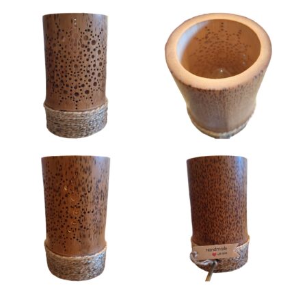 Luminária de Bambo, com um acabamento em corda de sisal que lhe confere um aspecto rústico. Cabo eléctrico com 1 metro 40 centímetros de comprimento, inclui uma lâmpada Led de luz quente que proporciona uma atmosfera acolhedora ao ambiente desejado. Você pode coloca-la em grande variedade de ambientes , como salas de jantar e estar, cozinhas e quarto de dormir.
