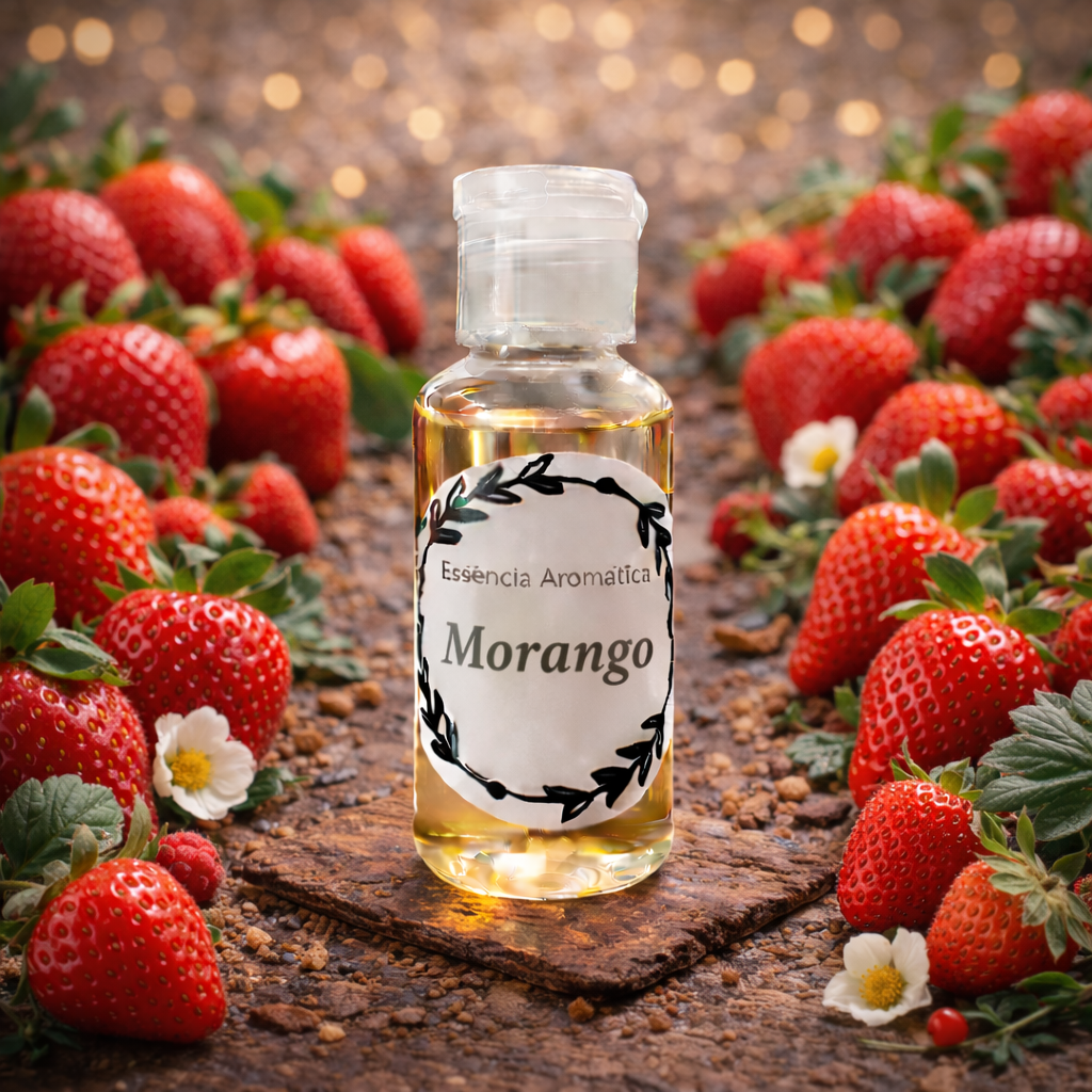 A essência de morango é doce, fresca e irresistivelmente frutada, ideal para utilização em velas artesanais que despertam sensações de alegria e leveza. O seu aroma reproduz o cheiro natural do morango maduro, combinando doçura equilibrada com um toque ligeiramente fresco e luminoso.